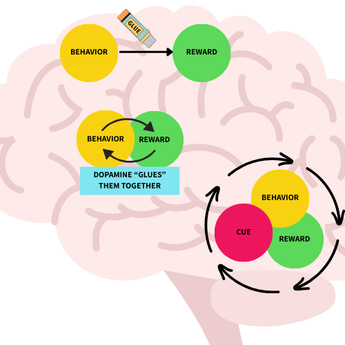 Habits are automatic behaviors formed through repeated actions and reinforced neural pathways. In the brain, the basal ganglia plays a central role in habit formation, particularly the dorsal striatum, which supports cue-response patterns. When a behavior is repeated in a consistent context, the brain begins to "chunk" it—linking the cue, routine, and reward—so it requires less conscious effort over time. Meanwhile, dopamine strengthens the association between actions and rewards, increasing the likelihood of repeating the behavior.